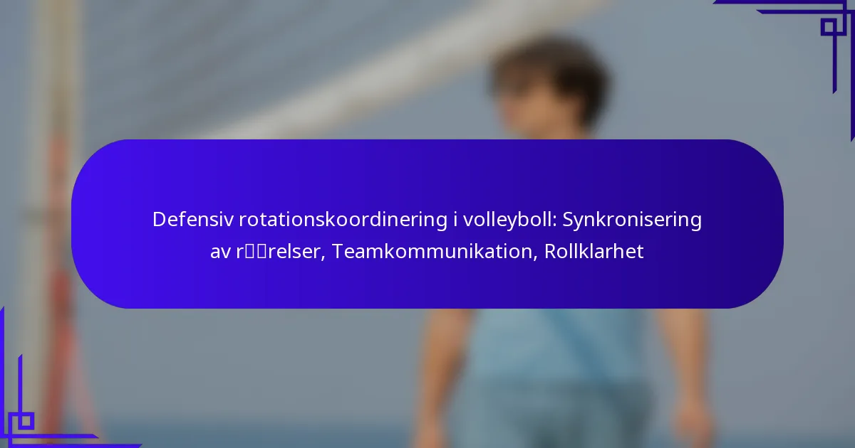 Defensiv rotationskoordinering i volleyboll är avgörande för att upprätthålla ett solid försvar mot motståndarlag. Genom att synkronisera rörelser genom tydlig kommunikation och definierade roller kan spelarna effektivt reagera på bollens position och förbättra sin övergripande prestation. Att etablera starka kommunikationsstrategier och öva specifika övningar är avgörande för att uppnå sömlöst samarbete under defensiva spel.