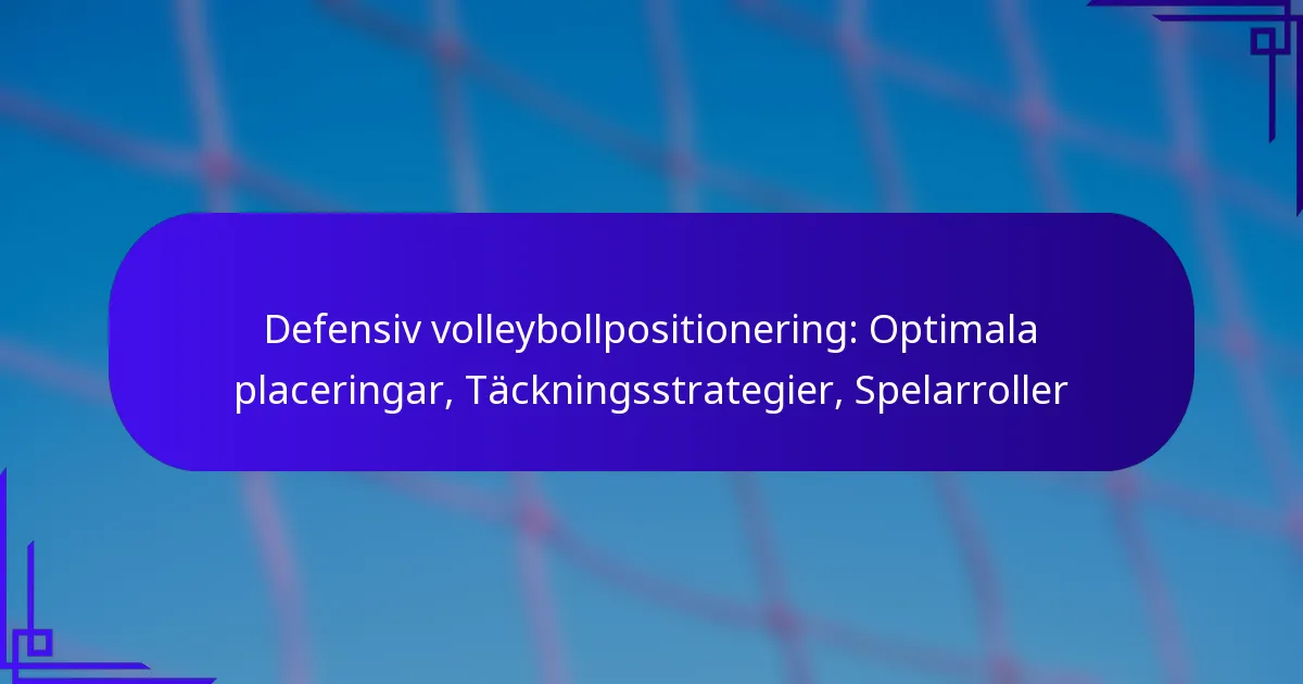 Defensiv volleybollpositionering är avgörande för att maximera täckningen av planen och säkerställa att spelarna kan reagera snabbt på motståndarens attacker. Genom att förstå optimala placeringar och implementera effektiva täckningsstrategier kan lagen förbättra sina defensiva förmågor och skapa en sammanhållen enhet. Varje spelares distinkta roll spelar en viktig del i att förutse rörelser och genomföra en framgångsrik försvar under matcher.