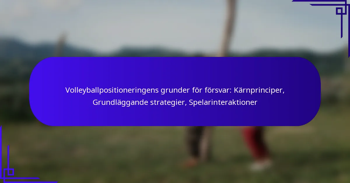 Effektiv defensiv positionering i volleyboll bygger på att förstå grundstrategier som förbättrar spelarnas interaktioner och den övergripande lagprestationen. Nyckelprinciper inkluderar att upprätthålla rätt avstånd, förutsäga motståndarens rörelser och anpassa sig till olika servetyper. Genom att fokusera på dessa strategier kan lag avsevärt förbättra sina defensiva förmågor.
